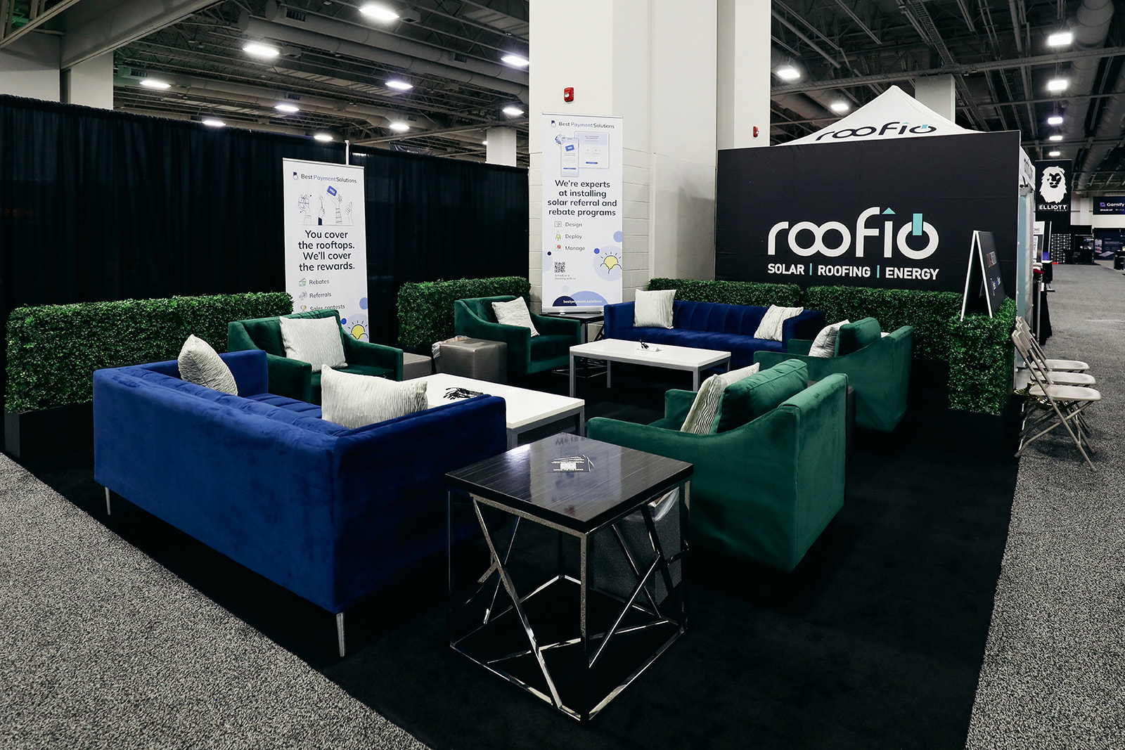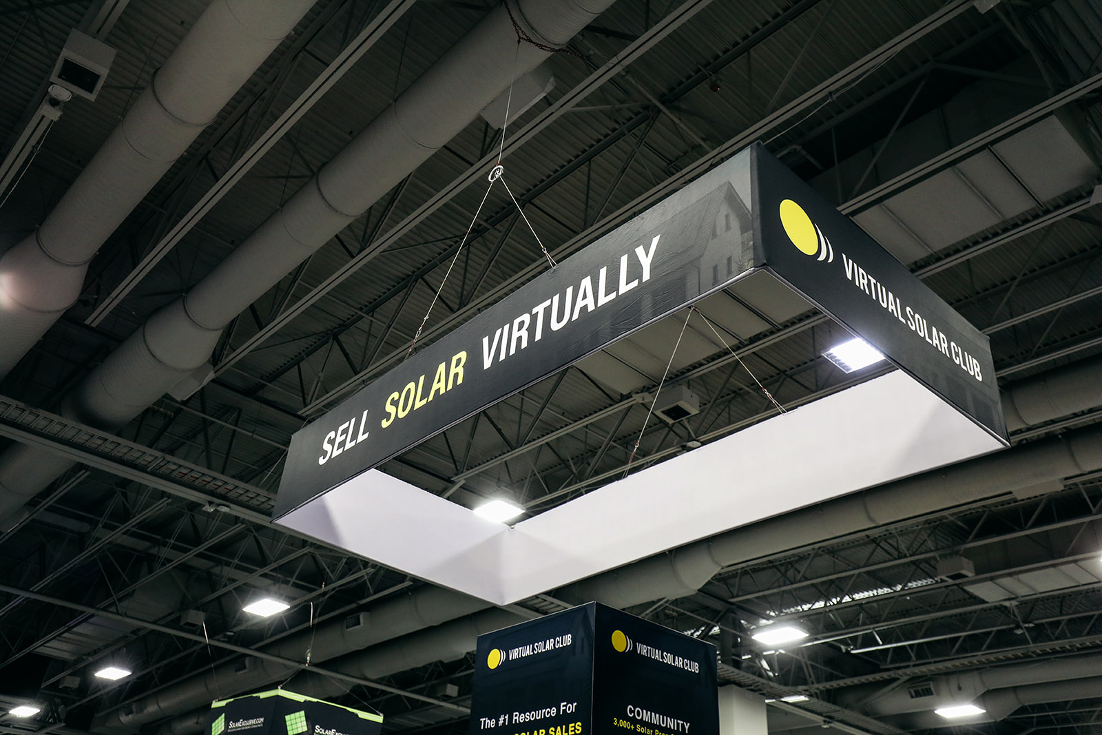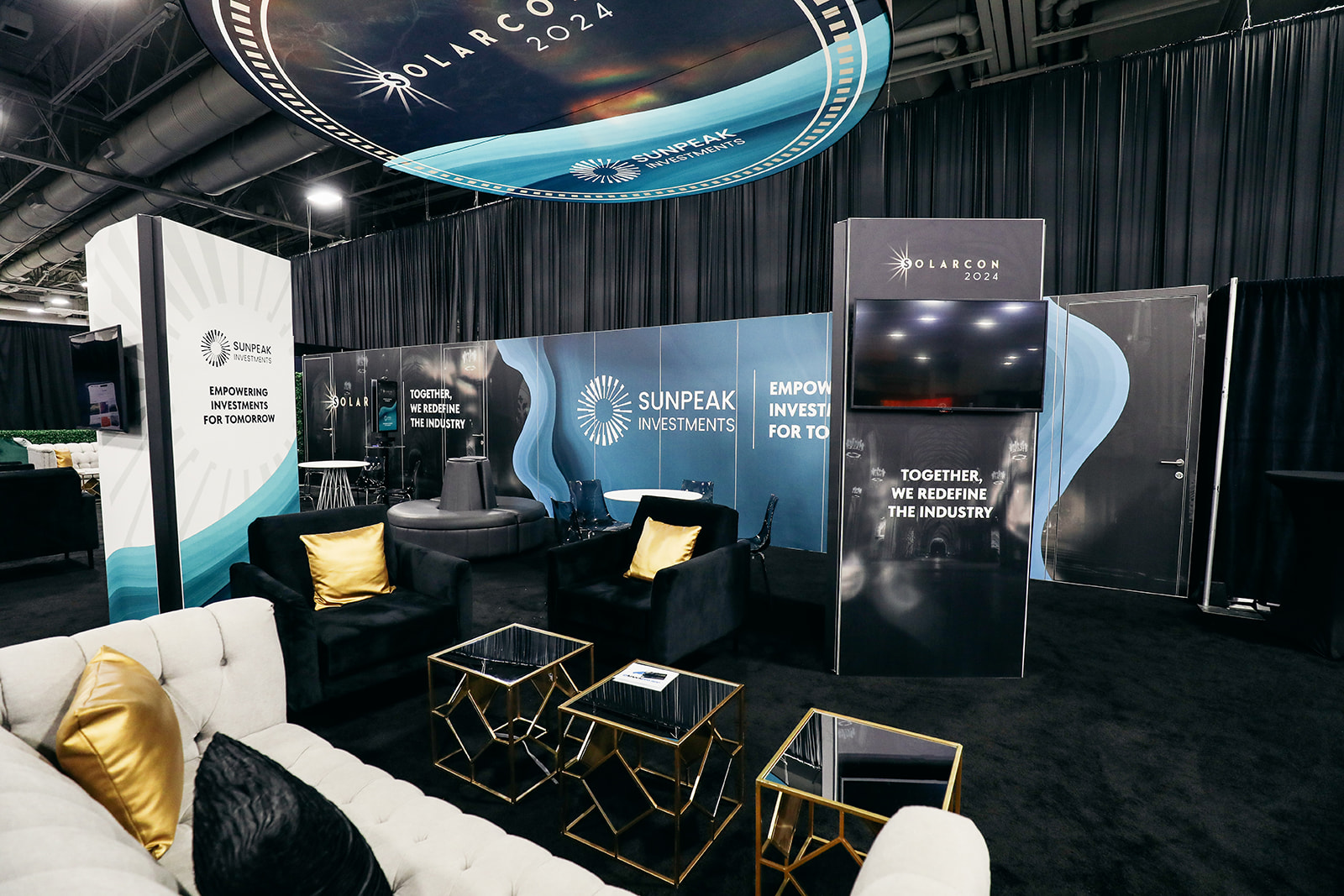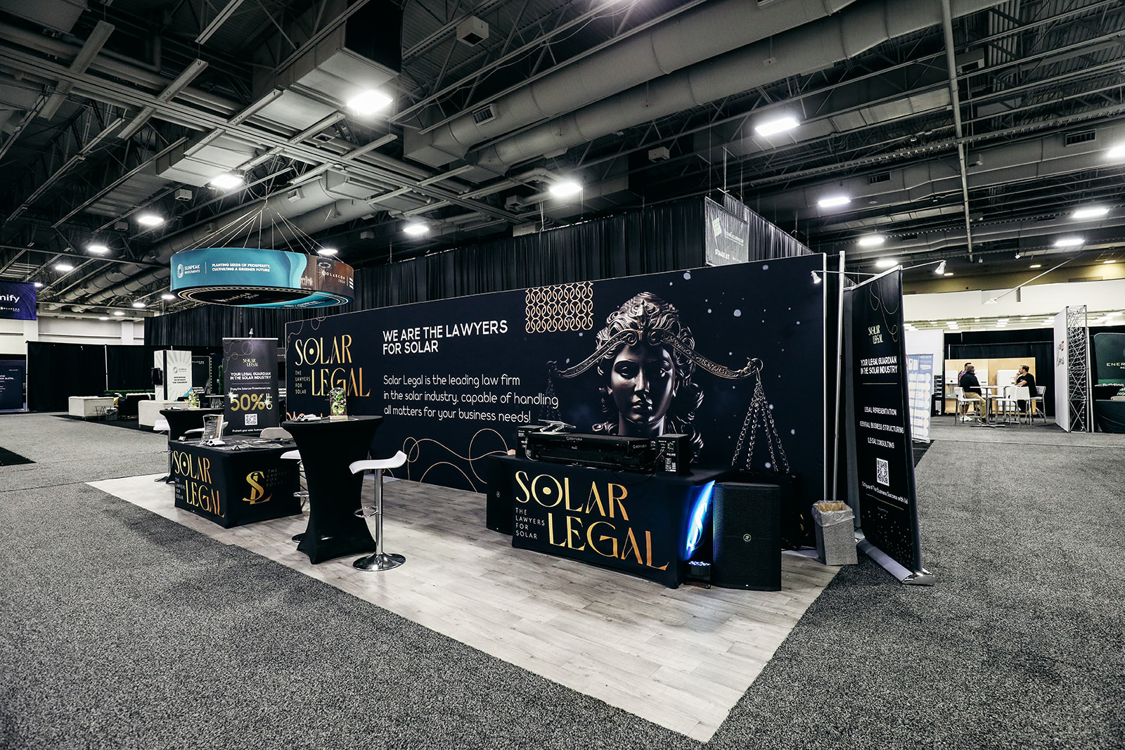 Explore our portfolio from Solar Con, where we transformed the gala room with a stunning giant chandelier effect and provided chair rentals, linens, and elegant seating areas. We also designed custom exhibits, hanging signs, and an eye-catching LED sign to enhance the event’s ambiance.