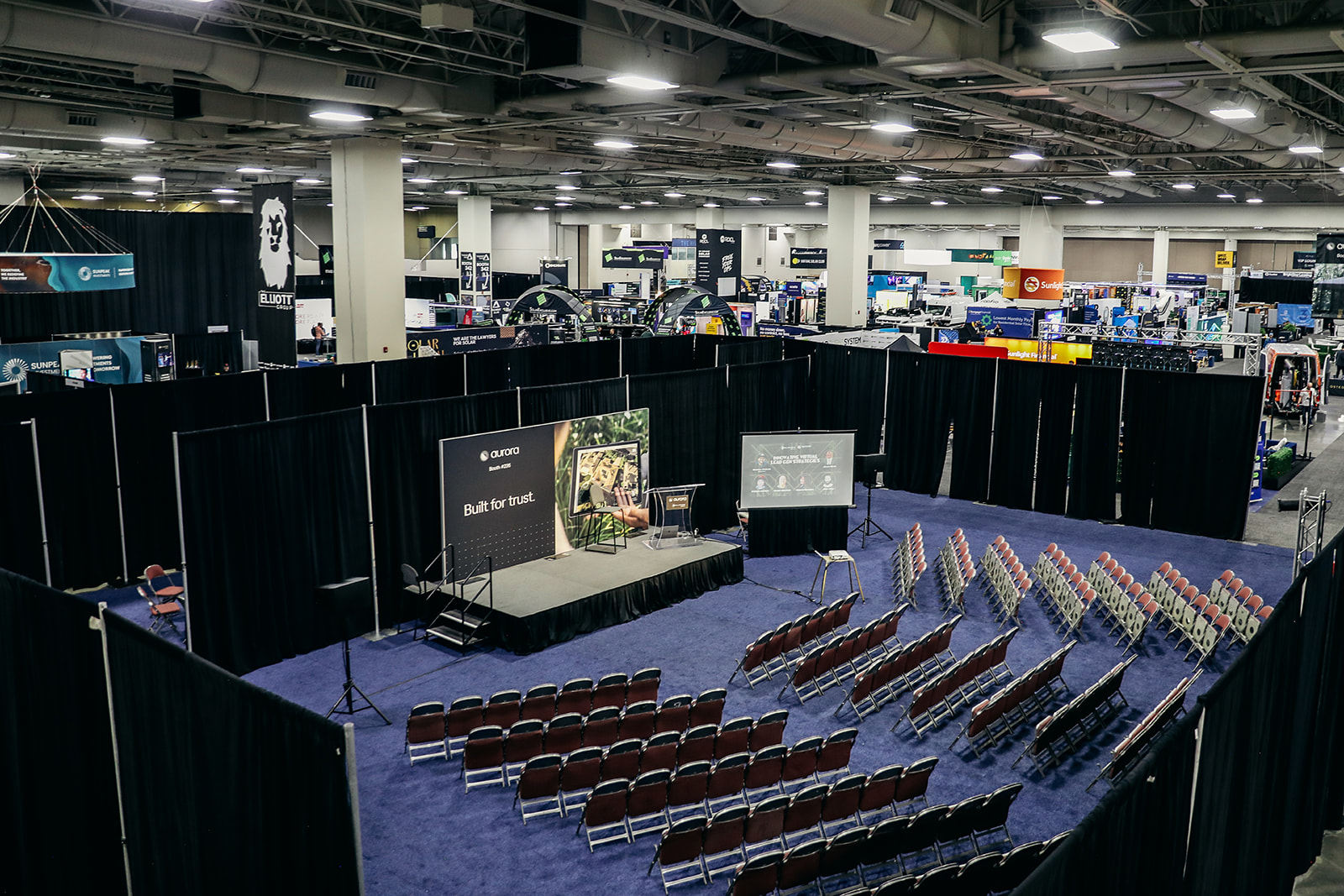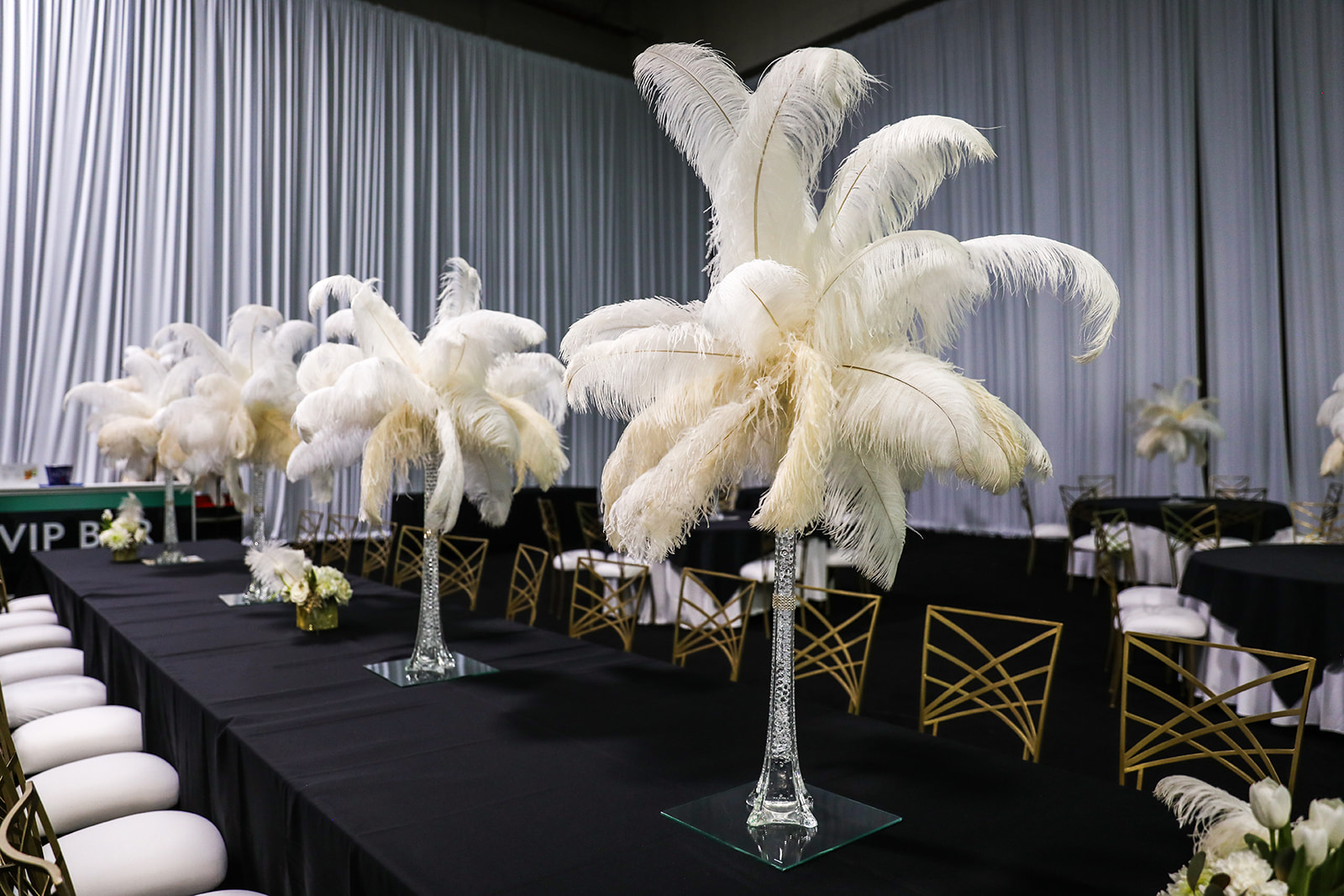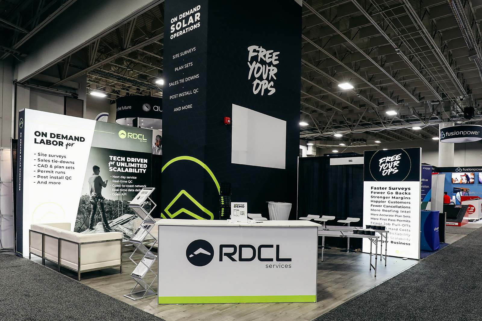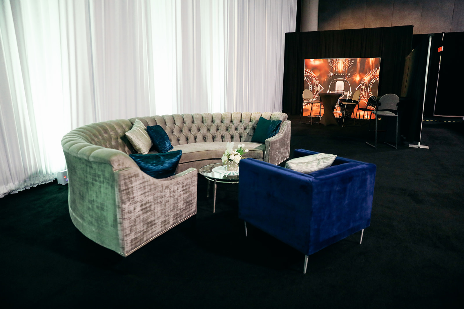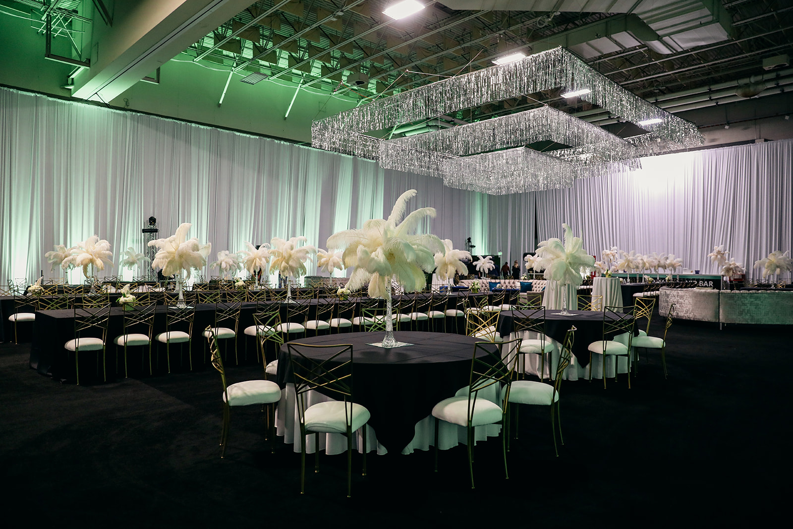 Explore our portfolio from Solar Con, where we transformed the gala room with a stunning giant chandelier effect and provided chair rentals, linens, and elegant seating areas. We also designed custom exhibits, hanging signs, and an eye-catching LED sign to enhance the event’s ambiance.